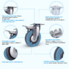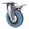 Поворотная колесная опора scgb25 c платформенным типом крепления предназначена для лабораторного, медицинского, торгового оборудования. Рассчитана на нагрузку до 25 кг. Литая шинка из серой полуэластичной резины прекрасно ведет себя на всех напольных покрытиях, обеспечивает тихое и плавное передвижение, не оставляет следов. Полипропиленовый обод не боится коррозии и может подвергаться частой влажной очистке. Кронштейн с педалью тормоза изготовлен из оцинкованной стали. Подшипник скольжения в оси колеса защищен металлическим кожухом. Температура эксплуатации — от -20 до +50 °С.