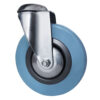 Поворотная колесная опора schg93 c отверстием под болт предназначена для лабораторного, медицинского, торгового оборудования. Допустимая нагрузка на колесо составляет 50 кг. Литая шинка колеса из серой полуэластичной резины прекрасно ведет себя на всех напольных покрытиях, обеспечивает тихое и плавное передвижение, не оставляет следов на полу. Полипропиленовый обод не боится коррозии и может подвергаться частой влажной очистке. Кронштейн изготовлен из оцинкованной листовой стали. Подшипник скольжения в оси колеса защищен металлическим кожухом. Температура эксплуатации — от -20 до +50 °С.