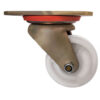 Большегрузная поворотная колесная опора ED01HBZ125 предназначена для использования в составе тележек и подвижного оборудования, задействованного в пищевой, медицинской и торговой отраслях. Допустимая максимальная нагрузка на модель составляет 400 кг. Полиамид сохраняет устойчивость даже при интенсивной эксплуатации, не боится воздействия влаги и химически активных веществ. Также этот материал отличается низким коэффициентом трения и отличной износостойкостью. Шариковый подшипник в ступице колеса обеспечивает плавное вращение при минимальном усилии. Поворотный кронштейн изготовлен из оцинкованной стали.