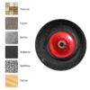 Пневматическое колесо PR 1805-20 AS устанавливается на садовые тачки, двухколесные ручные тележки и на некоторые виды строительного и складского оборудования. Также данная модель может быть использована как транцевое колесо для транспортировки надувных лодок из ПВХ. Благодаря хорошей амортизации колесо можно использовать на грунтовых поверхностях. Может выдерживать вес до 140 кг.