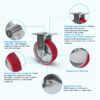 Большегрузная колесная опора fcp46 с платформенным креплением используется для комплектации складского, промышленного, строительного оборудования, тяжелых механизмов и техники. Нагрузочная способность модели — 230 кг. В качестве материала для неповоротного кронштейна использована качественная оцинкованная листовая сталь. Обод изготовлен из серого чугуна и снабжен смазочным ниппелем. Полиуретановый контактный слой подходит для использования на большинстве поверхностей, включая асфальт и бетон, не оставляет следов на плитке и наливных полах. Температура эксплуатации — от -20 до +80 °С.