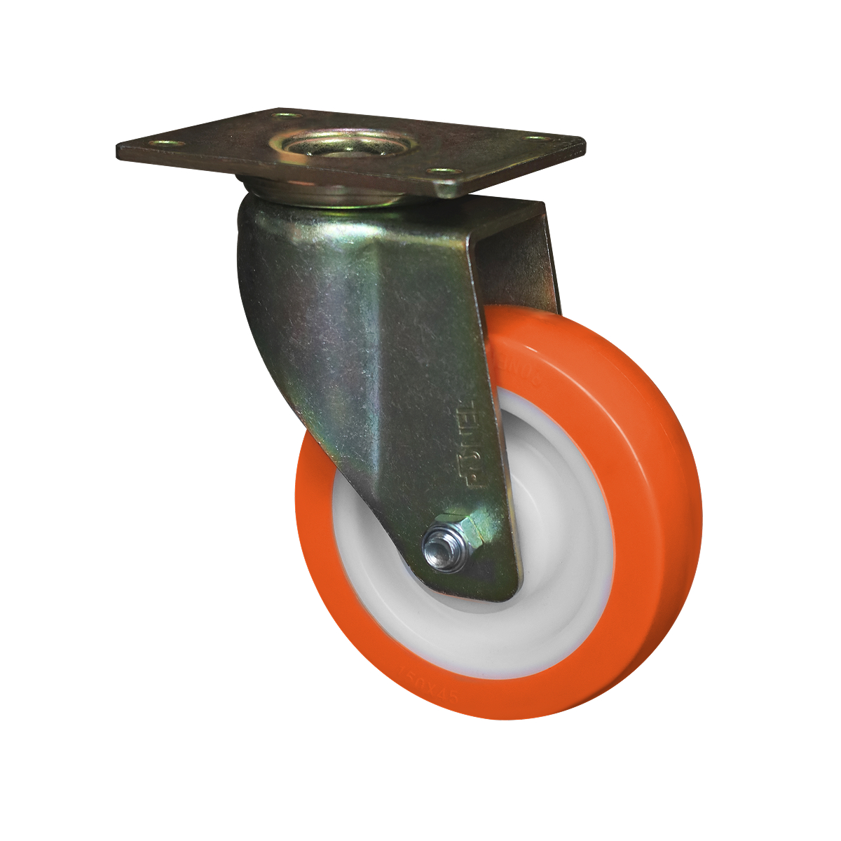 Поворотное колесо RONEL RN01 NPU 200 рассчитано на нагрузку до 720 кг, используется для установки на платформенные тележки, передвижное производственное оборудование, конвейерные системы, мобильные станки. Обод модели изготовлен из высокопрочного белого полиамида (нейлона), обеспечивающего максимальную жесткость и устойчивость к деформации. Шинка изготовлена из износостойкого полиуретана, который гарантирует хорошее сцепление с напольными покрытиями, при этом не оставляет тормозных следов. Также полиуретан обладает повышенной стойкостью к порезам, абразивному истиранию, воздействию масел, технических жидкостей и слабых химикатов, сохраняя свои свойства в диапазоне температур от -40 до +80 °С.