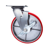 Большегрузная колесная опора scpb42 с платформенным креплением используется для комплектации складского, промышленного, строительного оборудования, тяжелых механизмов и техники. Нагрузочная способность модели — 230 кг. Для блокировки колеса предусмотрен ножной тормоз. В качестве материала для поворотного кронштейна использована качественная оцинкованная листовая сталь. Обод изготовлен из серого чугуна и снабжен смазочным ниппелем. Полиуретановый контактный слой подходит для использования на большинстве поверхностей, включая асфальт и бетон, не оставляет следов на плитке и наливных полах. Температура эксплуатации — от -20 до +80 °С.