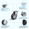 Поворотная колесная опора sc42 с платформенным типом крепления предназначена для комплектации промышленного, складского и строительного оборудования. Литая шинка из полуэластичной черной резины подходит для асфальтовых и бетонных покрытий, хорошо служит на неровных и изношенных полах. Колесо рассчитано на нагрузку 70 кг. Обод и кронштейн изготовлены из стойкой к коррозии оцинкованной стали. Колесо устойчиво к воздействию влаги и пыли. Температура эксплуатации составляет от -10 до +50 °С.